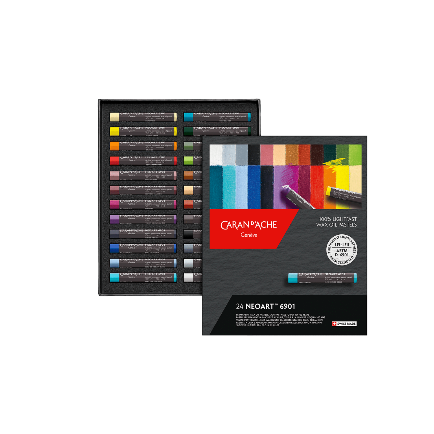 Caran d'Ache fortalece su gama Expert con el lanzamiento de NEOART™ 6901, el primer pastel de cera y óleo conforme a la norma ASTM D-6901, que ofrece una intensidad de color inigualable y una resistencia a la luz excepcional por hasta 100 años. Este pastel permanente combina la suavidad de la cera con la riqueza del óleo, creando una textura única. Con su alta concentración de pigmento y forma octogonal para un fácil manejo, NEOART™ 6901 está dirigido a profesionales, estudiantes de arte y creativos apasionados, ofreciendo un medio de calidad inigualable para crear obras nómadas, espontáneas y vibrantes que perduran en el tiempo. Con NEOART™ 6901, Caran d'Ache reafirma su experiencia y espíritu de innovación, estableciendo un nuevo estándar en el mundo de los pasteles.