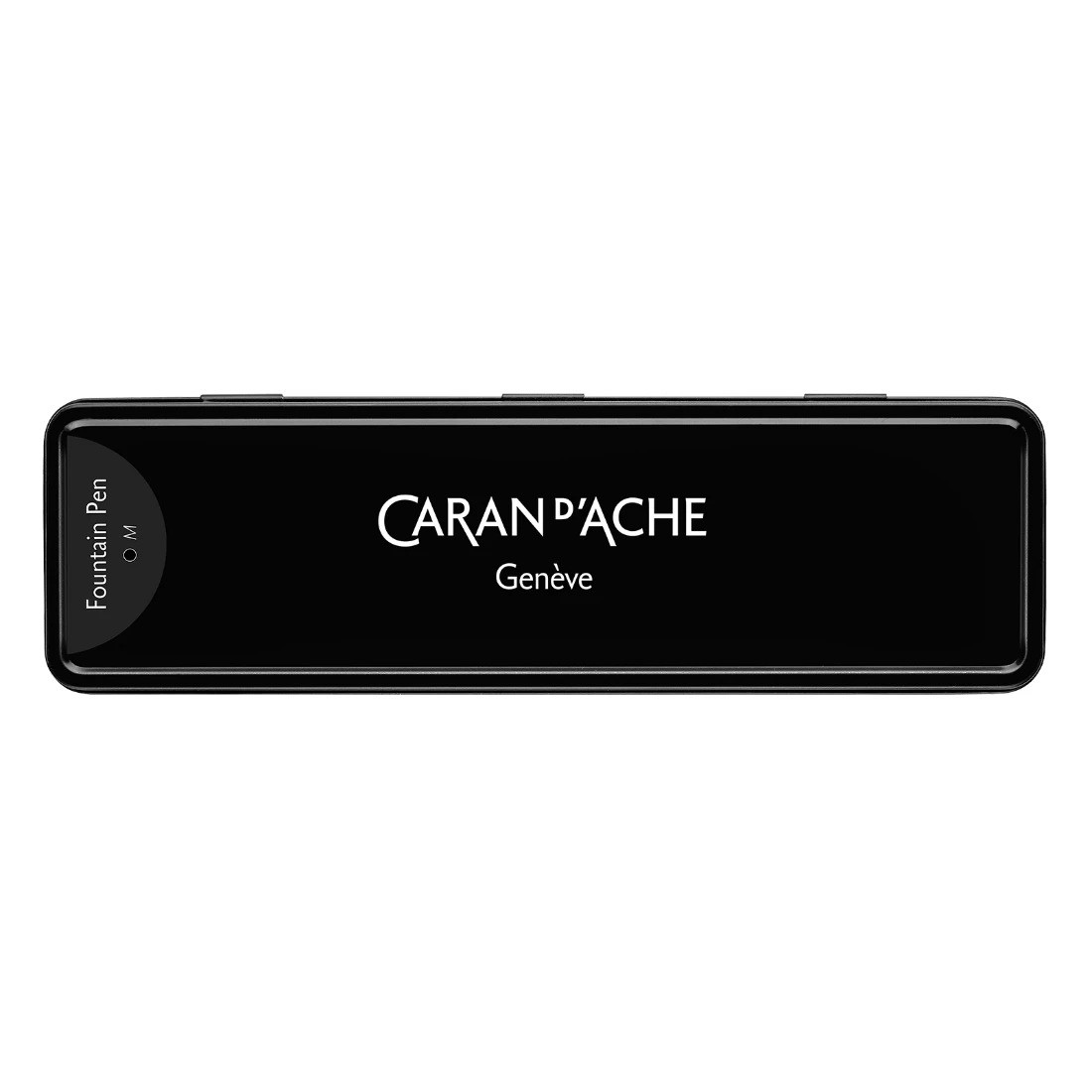 Estuche de metal negro brillante con logotipo Caran d Ache blanco en el interior y el exterior Espuma de alta densidad con recortes Dimensiones: 17,5 cm x 6 cm x 2 cm Peso: 83 g (65 g sin producto)