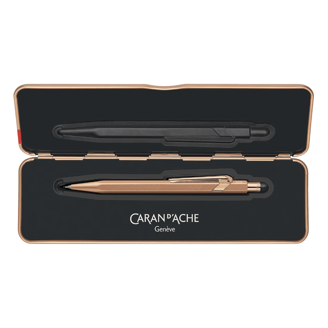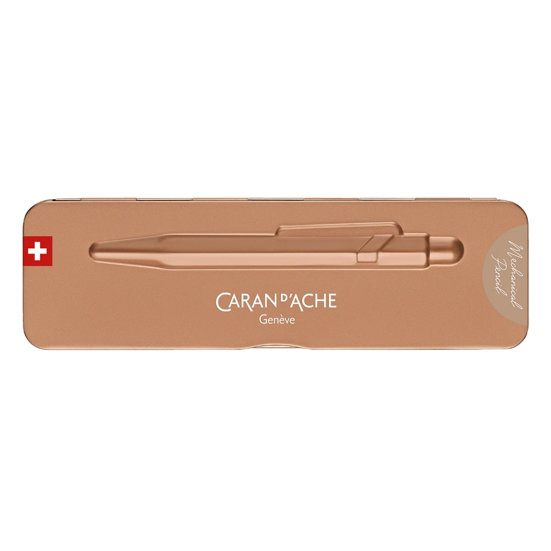 Cuerpo de aluminio hexagonal, ligero y resistente Acabado oro rosa satinado Clip metálico flexible a juego Pulsador metálico a juego con borrador y recámara con minas de repuesto G 0,7 mm incorporadas en la parte trasera, accesible quitando el pulsador
