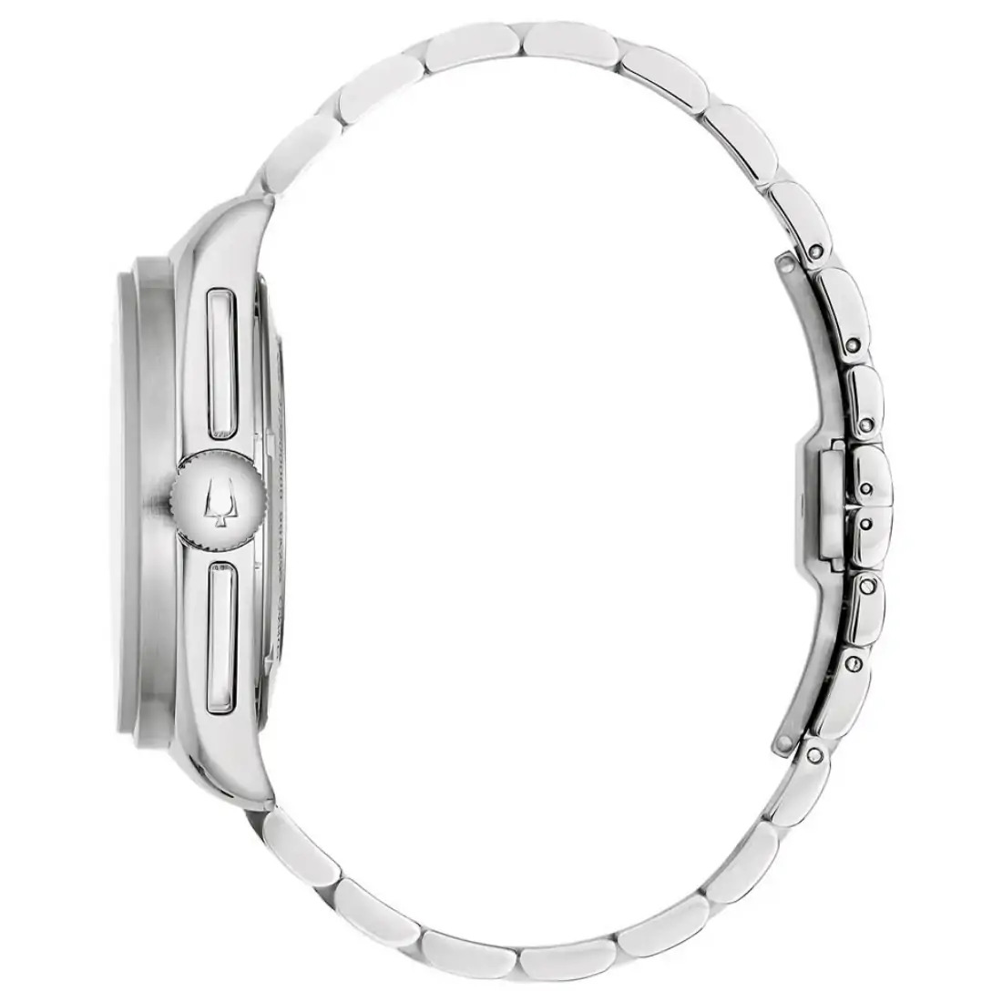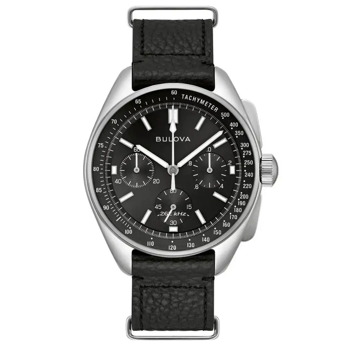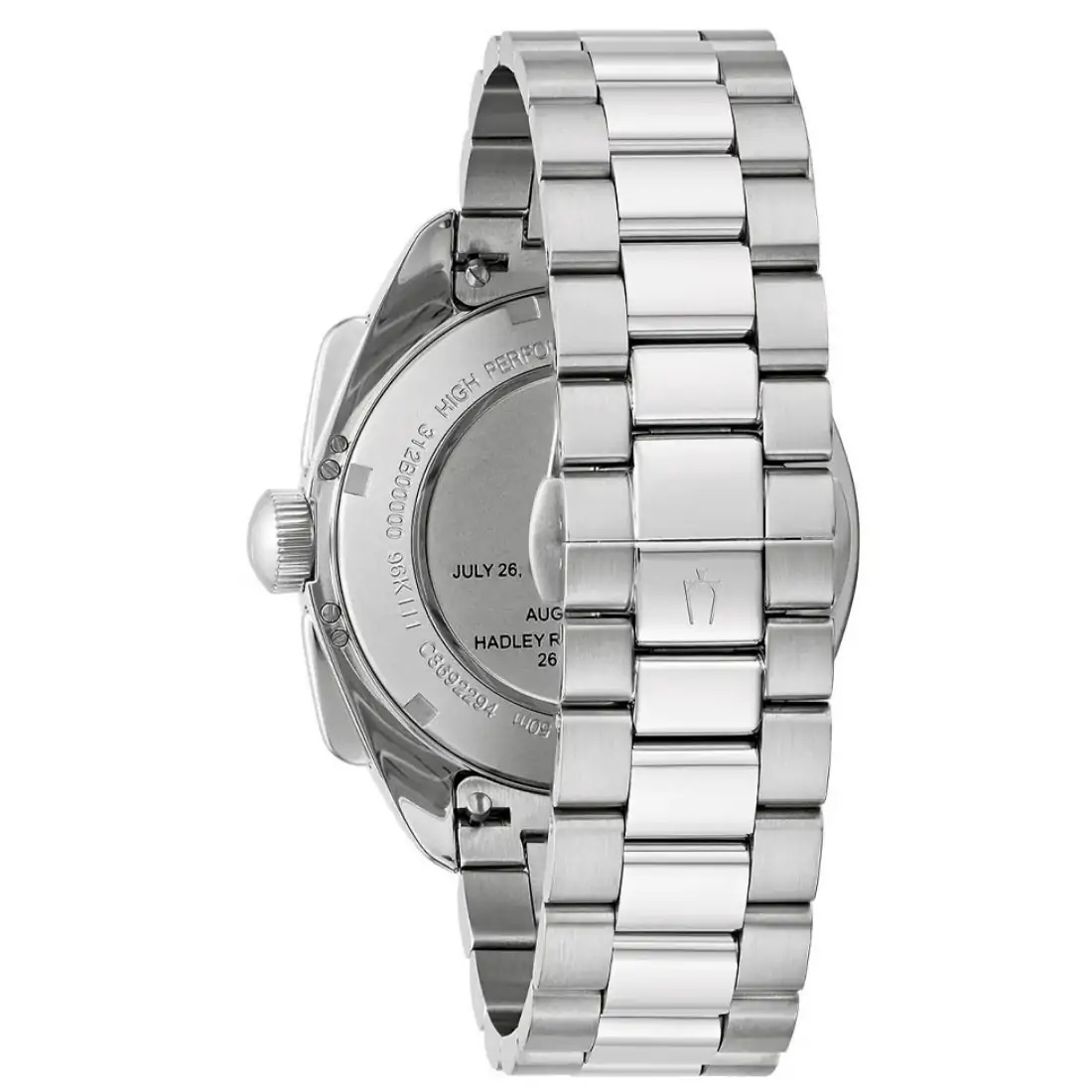 Reloj Bulova para Caballero colección Archivo Histórico Lunar Pilot. Réplica del reloj auténtico del Comandante de la misión del Apollo 15. Movimiento cronógrafo de cuarzo de alto rendimiento (HPQ) de 6 manecillas y 3 subcarátulas. Caja y brazalete realizados en acero inoxidable, broche desplegable de doble pulsador. Incluye set de correa de piel negra intercambiable. Carátula negra, indicadores y manecillas luminiscentes. Función de taquímetro. Cristal de zafiro con tratamiento antirreflejante. Diseño conmemorativo grabado en tapa trasera.