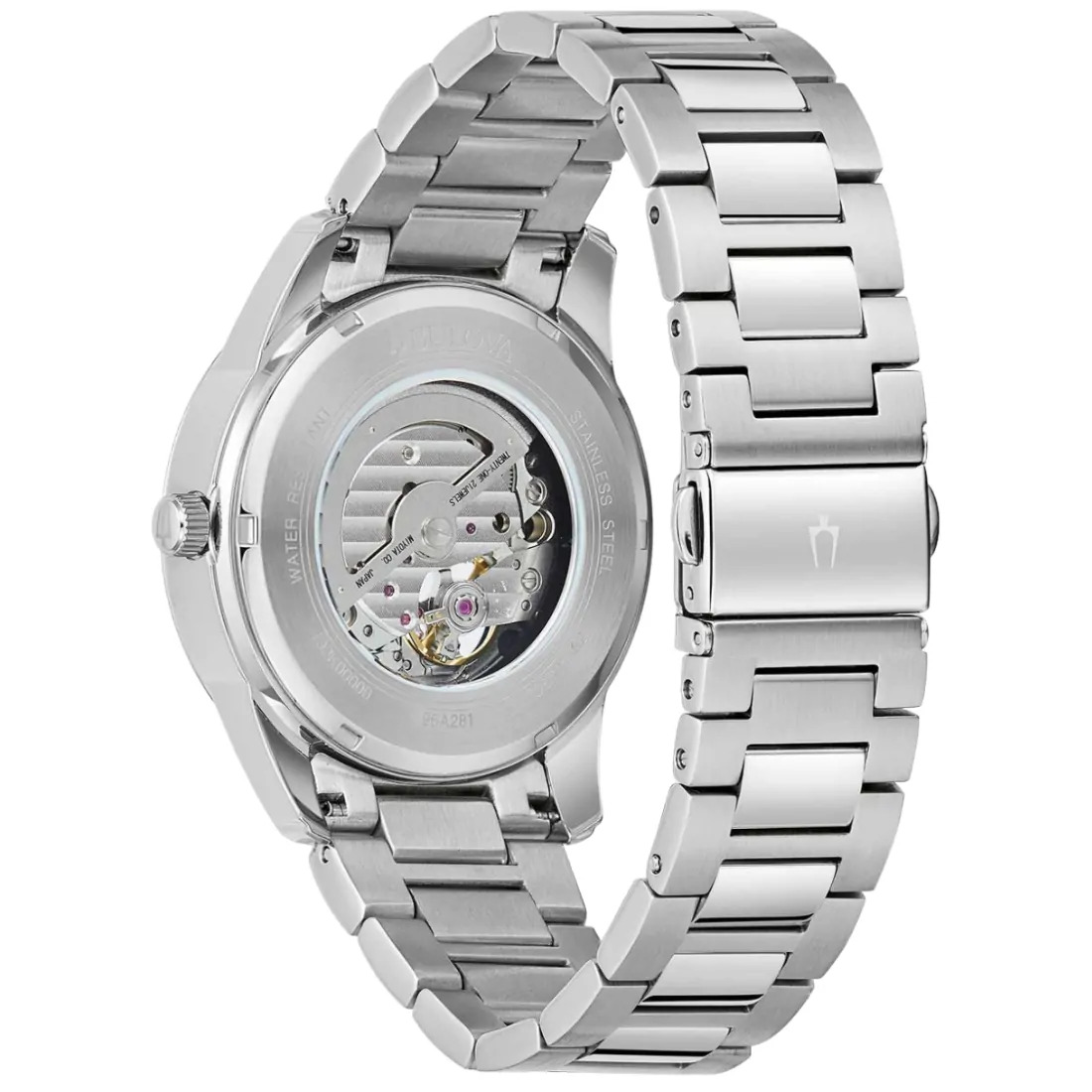 Reloj Bulova colección Clásicos para Caballero. Movimiento mecánico de cuerda automática de 3 manecillas. Reserva de marcha de 42 horas. Caja y brazalete realizados en acero inoxidable, broche desplegable de doble pulsador. Carátula azul con apertura que permite ver el funcionamiento del reloj, indicadores y manecillas luminiscentes en plateado. Cristal de zafiro.