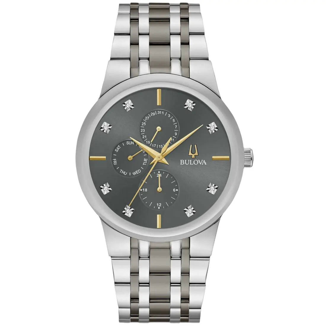 Gris con 8 diamantes montados a mano de forma individual en carátula como indicadores