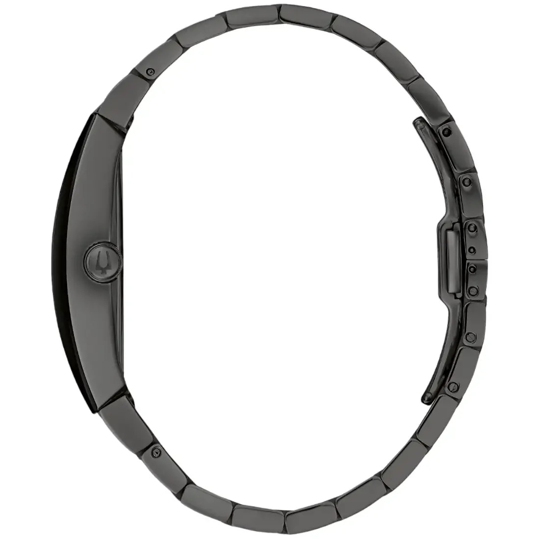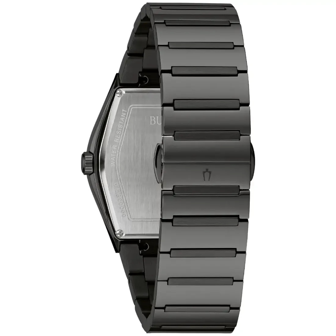 Reloj Bulova Gemini para caballero.4 diamantes montados de forma individual a mano en carátula como indicadores. Movimiento de cuarzo de 3 manecillas. Caja con moderno estilo tontea y brazalete realizados en acero inoxidable acabado PVD negro, broche desplegable de doble pulsador. Carátula negra, manecillas en plateado. Cristal mineral metalizado de borde a borde.