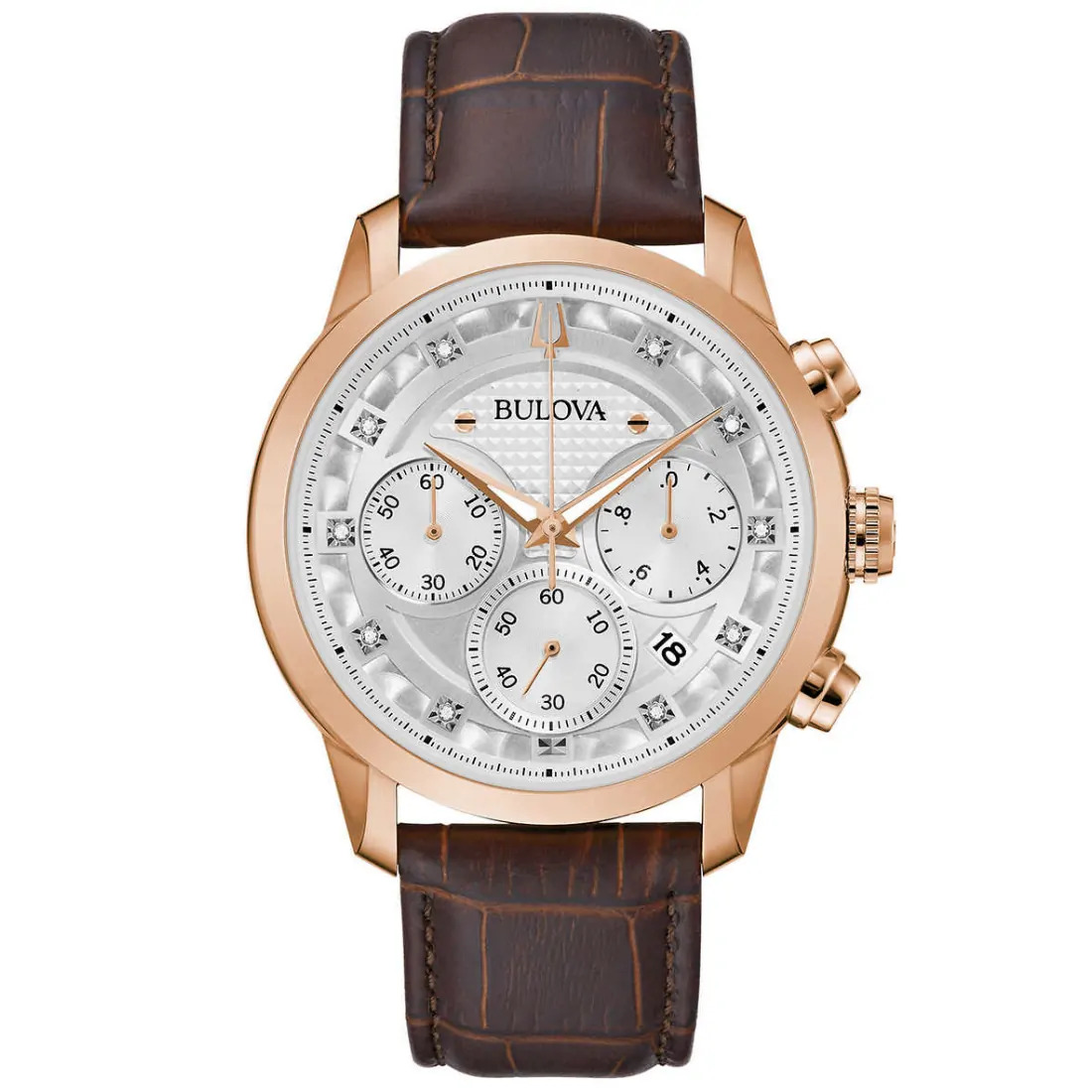 Plateado con 11 diamantes montados a mano de forma individual en carátula como indicadores