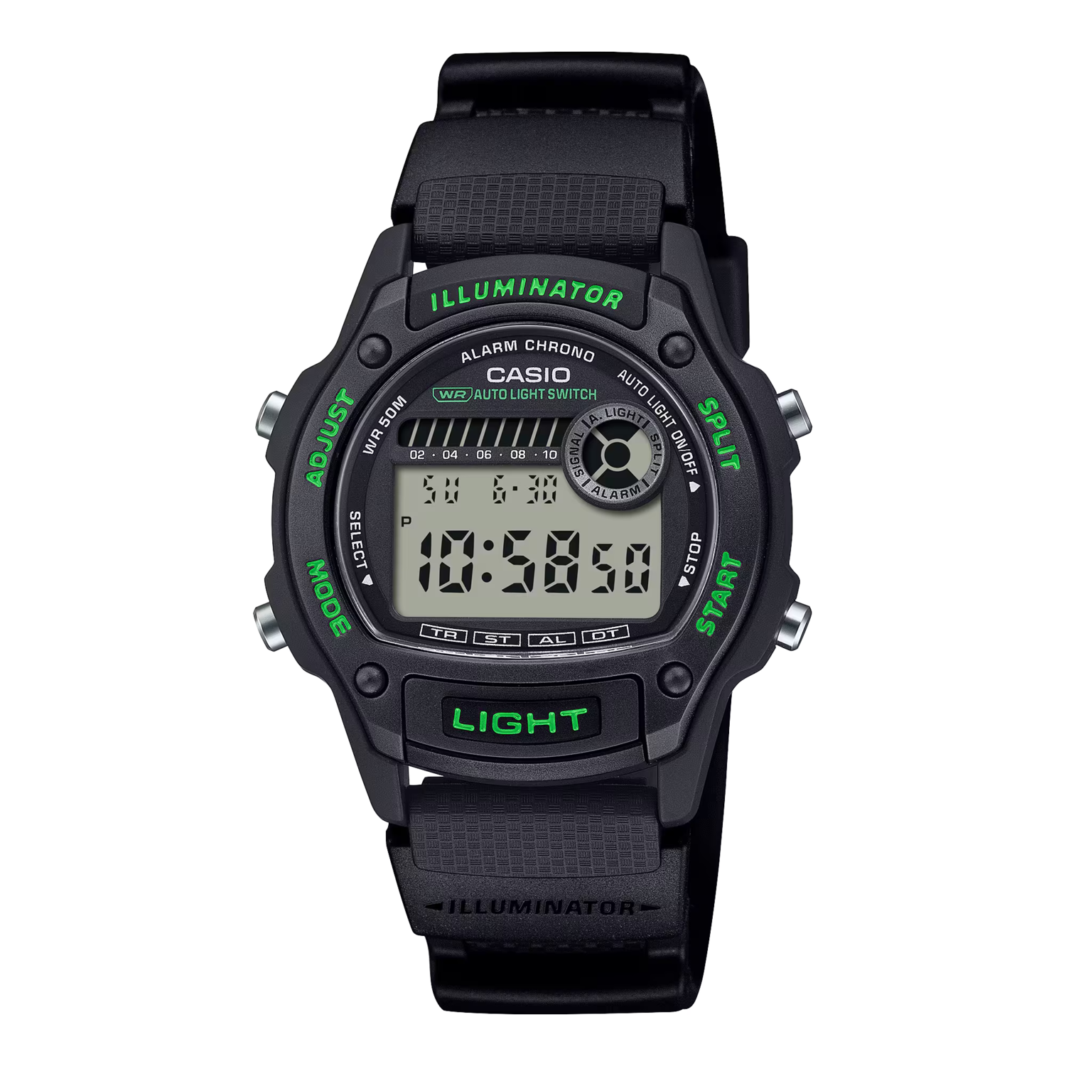 Comodidad y practicidad: un reloj digital de tamaño mediano con caja de 36,6 mm, diseñado para ofrecer un ajuste perfecto incluso en muñecas más delgadas. Cuenta con luz LED completamente automática y un botón frontal dedicado para una iluminación aún más práctica. La correa está elaborada con resina de origen biológico, un material pensado para ayudar a reducir el impacto ambiental.