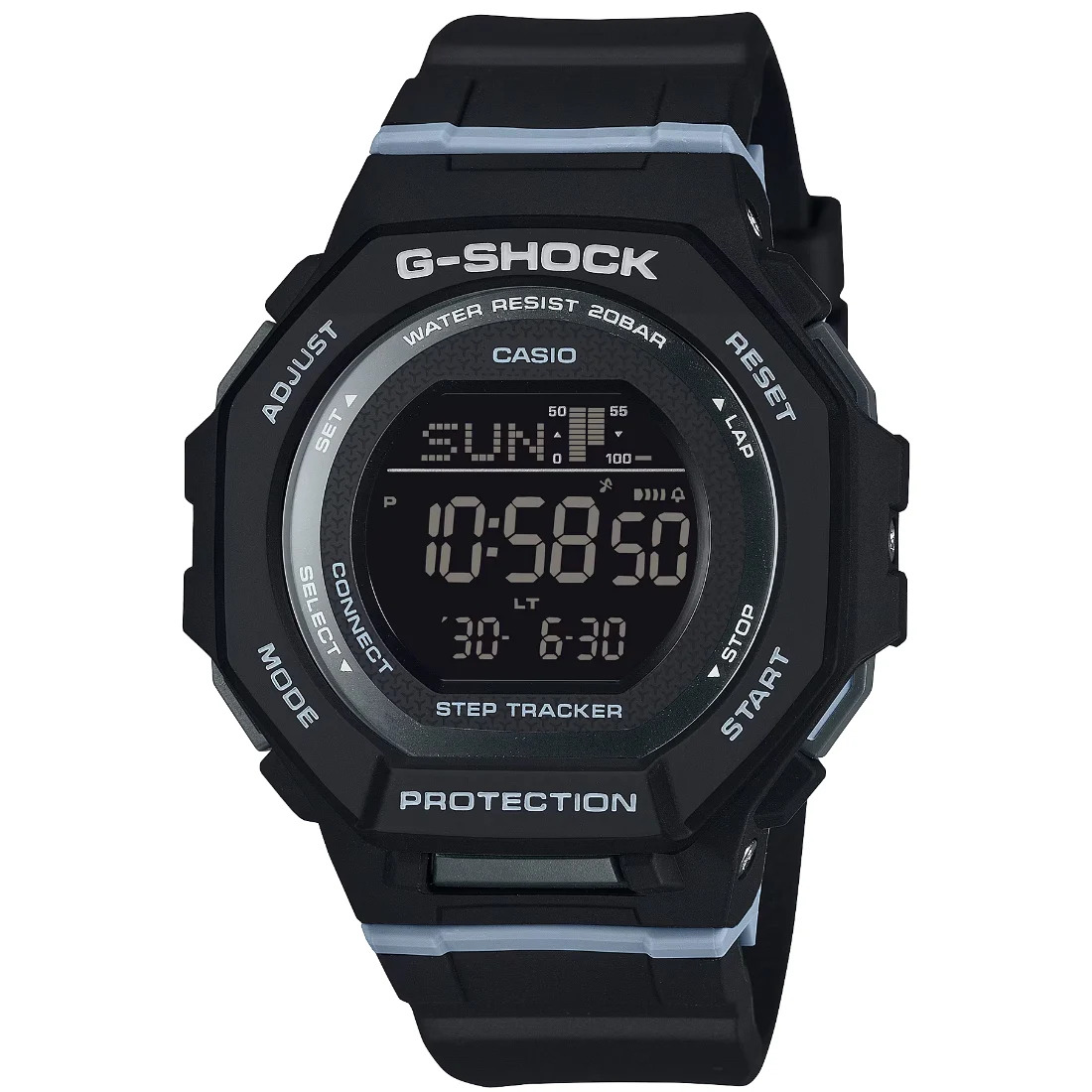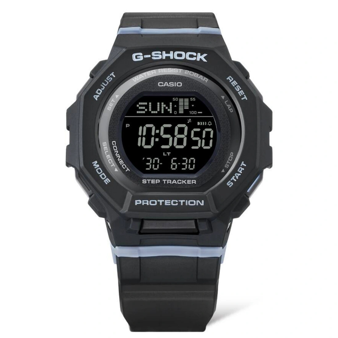 El complemento ideal para su actividad diaria: un G-SHOCK deportivo con rastreador de pasos ofrece una práctica ayuda para su estilo de vida saludable y activo. Comience a caminar y el acelerómetro con detección de movimiento contará sus pasos automáticamente. El reloj muestra los pasos diarios totales, además del progreso hacia sus objetivos. Los datos rastreados enviados a una aplicación dedicada lo ayudan a administrar fácilmente los datos de registro de vida.