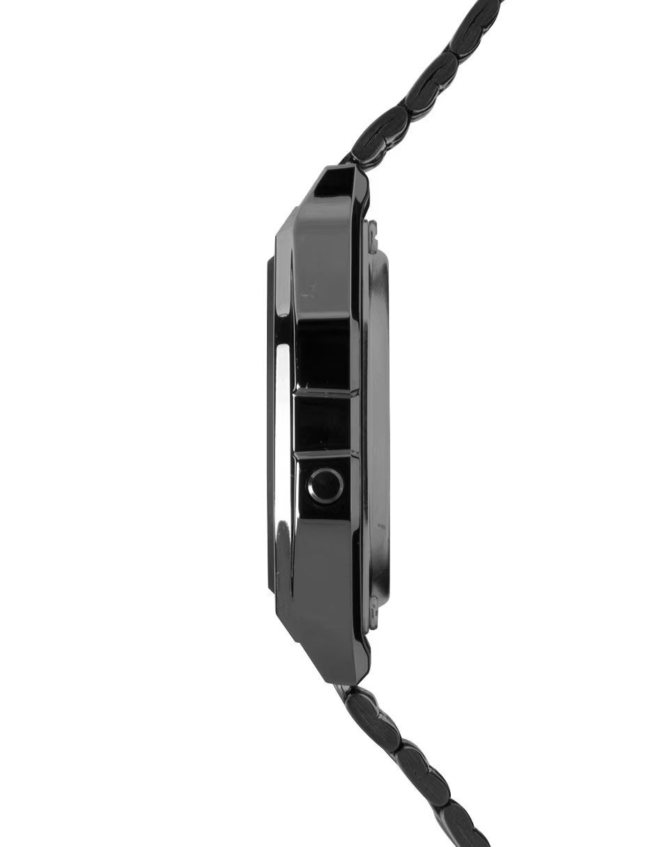 • Cronómetro de 1/100 segundos • Luz LED • Correa de acero inoxidable • Resistencia al agua • Parte frontal cuadrada