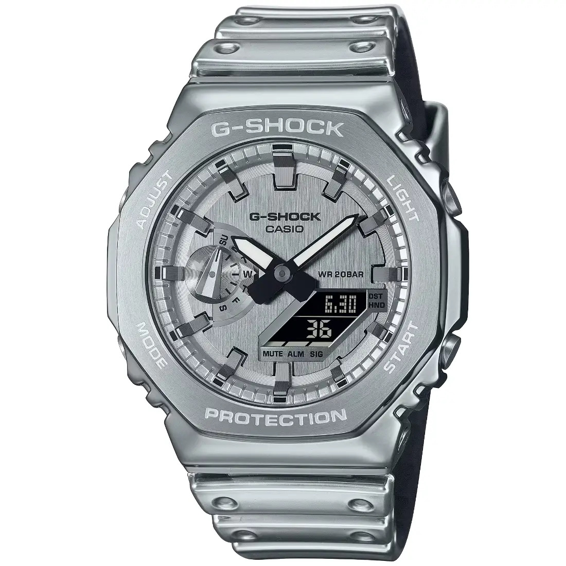 Hora mundial 31 zonas horarias Cronómetro Temporizador con cuenta regresiva 5 alarmas diarias Señal de hora Luz LED doble Blanco Calendario automático completo (hasta el año 2099) Función de silencio Precisión: h15 segundos por mes Formato 12/24 horas Función de movimiento de agujas (las agujas se apartan para proporcionar una visión sin obstrucciones del contenido digital de la pantalla). Funciones clásicas de reloj: Analógica: 2 manecillas (hora, minuto [la manecilla se mueve cada 20 segundos]), 1 dial (día) Digital: Horas, minutos, segundos, p. m., mes, fecha