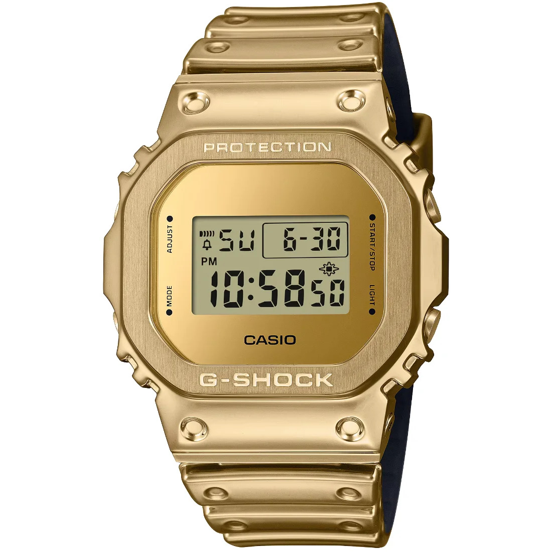 Descubre el poder y el estilo del G-STEEL dorado, un reloj que combina diseño sofisticado y resistencia. Su estructura monocromática en dorado resalta con un marco metálico y una correa de silicona de alta durabilidad, diseñada con una capa de uretano metalizado para un acabado brillante y elegante. Perfecto para quienes buscan un reloj versátil, moderno y resistente.