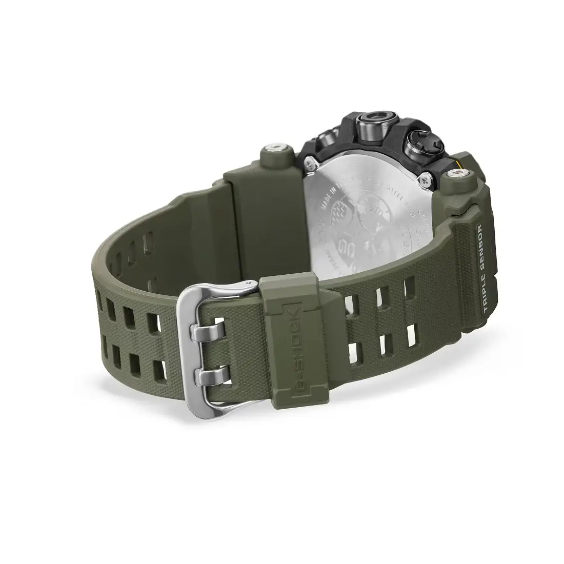 Tamaño de la caja (largo × ancho × alto): 56.7 × 52.7 × 14.8 mm Peso: 81 g Material de la caja y el bisel: Resina de base biológica Correa de resina de base biológica Resistente a impactos Resistente al barro Estructura Carbon Core Guard Reloj radio-controlado; Multiband 6 Resistencia al agua de 200 m Fuente de alimentación: Tough Solar (con energía solar) Brújula digital Altímetro Barómetro Termómetro