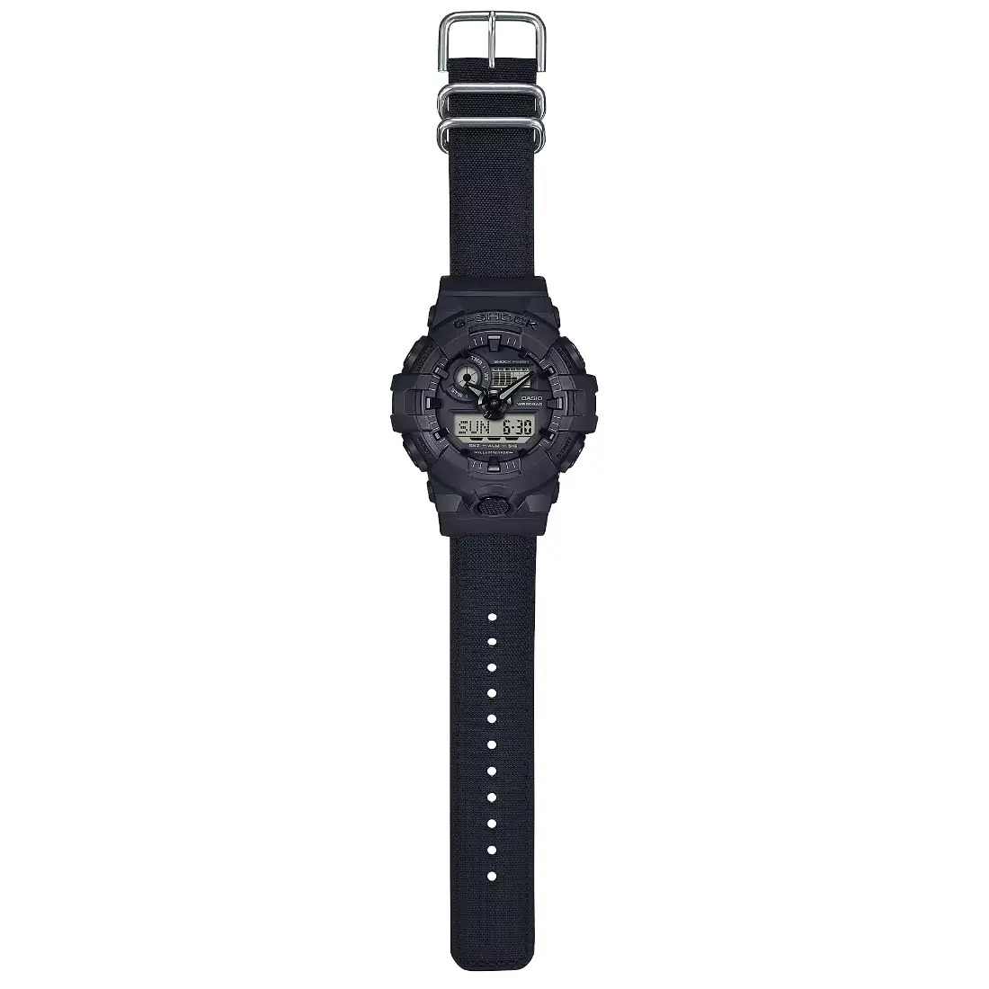 Este G-SHOCK con correa de nailon Cordura, práctico para la calle y ecológico al mismo tiempo, ofrece todo lo que necesita. El moderno diseño completamente negro se complementa con una correa hecha de nailon Cordura ecológico, lo que crea un aspecto fresco y versátil que le permite alternar sin problemas entre el trabajo y el ocio.