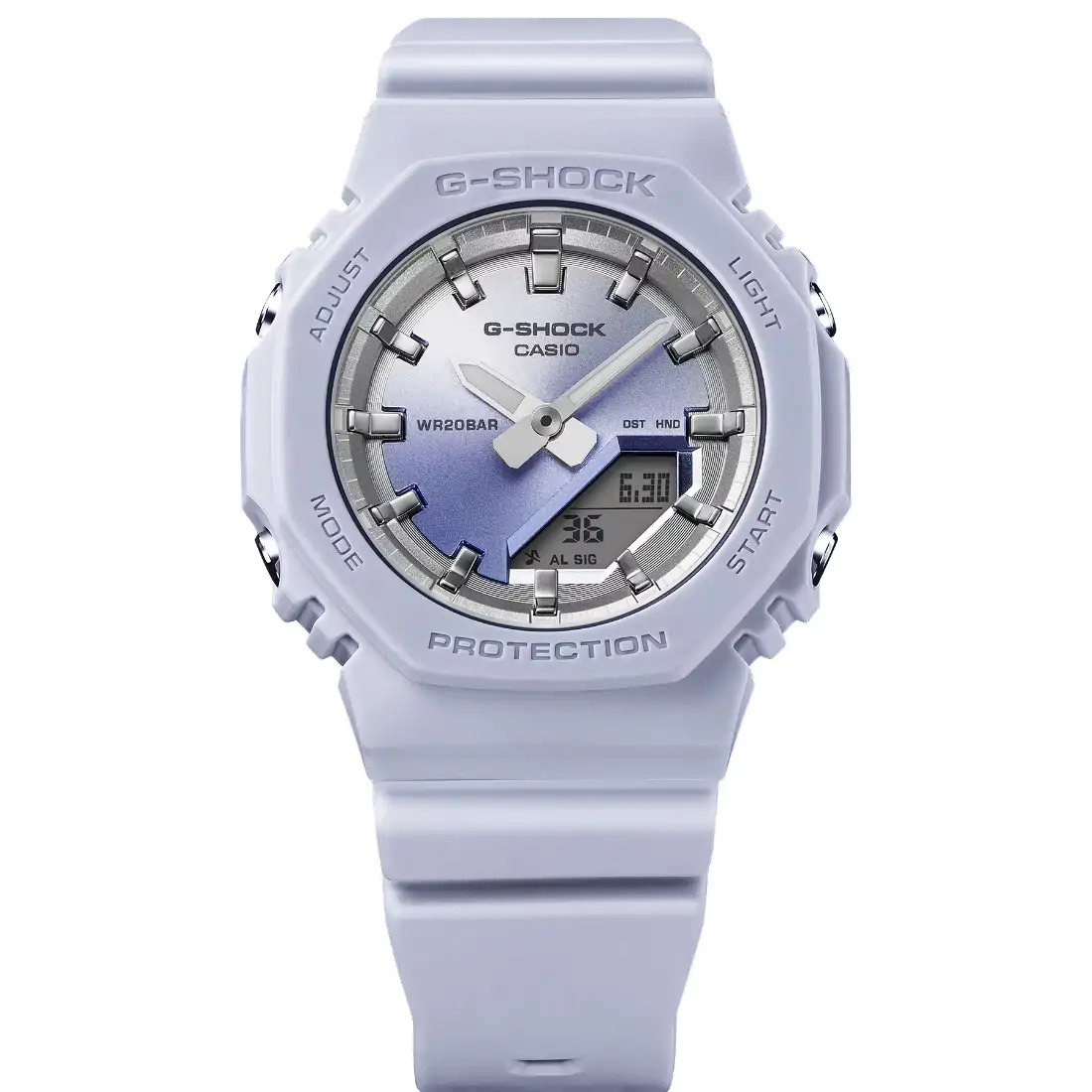 Tamaño de la caja (L× W× H): 46 × 40.2 × 11.2 mm Material de la caja/bisel: Resina/resina de base biológica Peso: 4o g Correa de resina de base biológica Resistente a impactos Resistencia al agua de 200 m Fuente de alimentación: pila