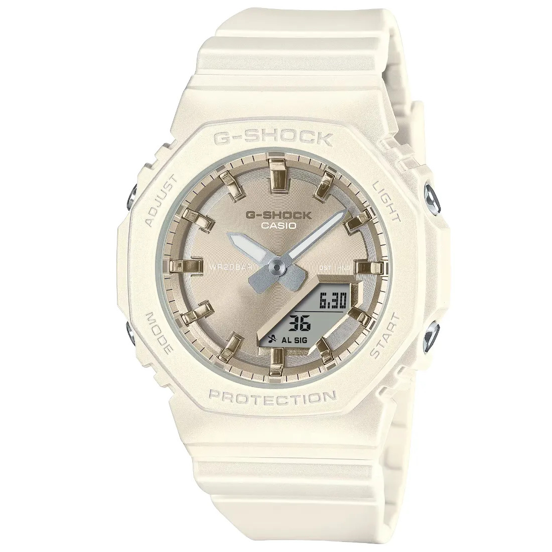 Este reloj CASIO G-SHOCK destaca por su delicado brillo perlado, aplicado a su marco y correa con un revestimiento polarizado mate que añade un toque sutil de elegancia. El dial metálico ofrece un hermoso lustre, creando un diseño minimalista y refinado. Fabricado con resina de origen biológico, este G-SHOCK no solo resalta por su estilo, sino también por su enfoque en la sostenibilidad.