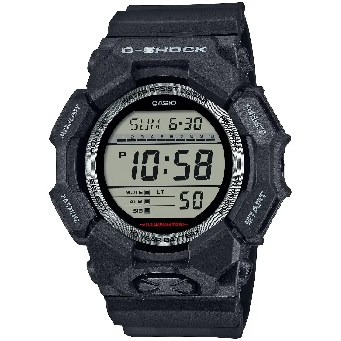 Tamaño de la caja (L× W× H): 54.9 × 51.9 × 16.1 mm Material de la caja/bisel: Carbono de origen biológico/resina de origen biológico Peso: 65 g Correa de resina de base biológica Resistente a impactos Estructura Carbon Core Guard Resistencia al agua de 200 m Fuente de alimentación: pila
