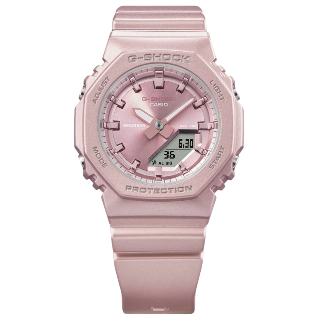 Tamaño de la caja (L× W× H): 46 × 40.2 × 11.2 mm Material de la caja/bisel: Resina/resina de base biológica Peso: 40 g Correa de resina de base biológica Resistente a impactos Resistencia al agua de 200 m Fuente de alimentación: pila