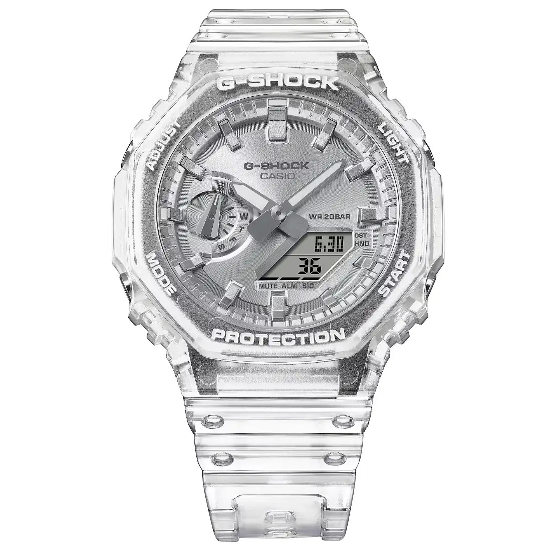 Tamaño de la caja (largo × ancho × alto): 48.5 × 45.4 × 11.8 mm Material de la caja/bisel: Carbono/resina Peso: 51 g Correa de resina Resistente a impactos Estructura Carbon Core Guard Resistencia al agua de 200 m Fuente de alimentación: pila