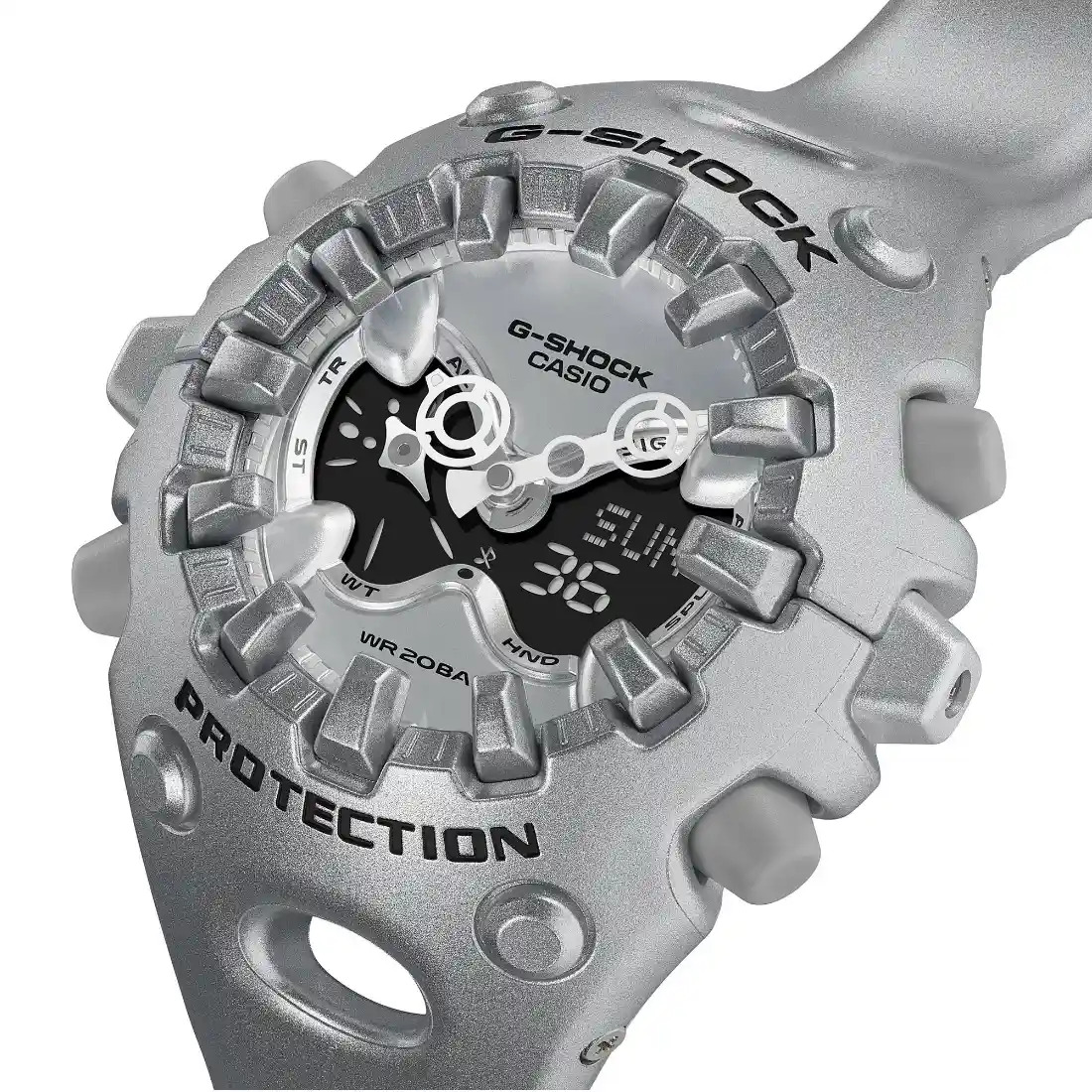 Tamaño de la caja (largo × ancho × alto): 49.1 × 58.2 × 19.6 mm Material de la caja/bisel: Resina Peso: 74 g Correa de resina Resistente a impactos Resistencia al agua de 200 m Fuente de alimentación: pila