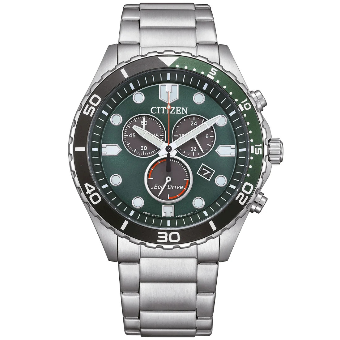 Con un diseño inspirado en los relojes de buceo. El reloj cronógrafo deportivo, resalta con una caja y brazalete de acero inoxidable, cristal y una caratula negra con manecillas e índices iluminados. Ideal para cualquiera que disfrute de la funcionalidad y el estilo.