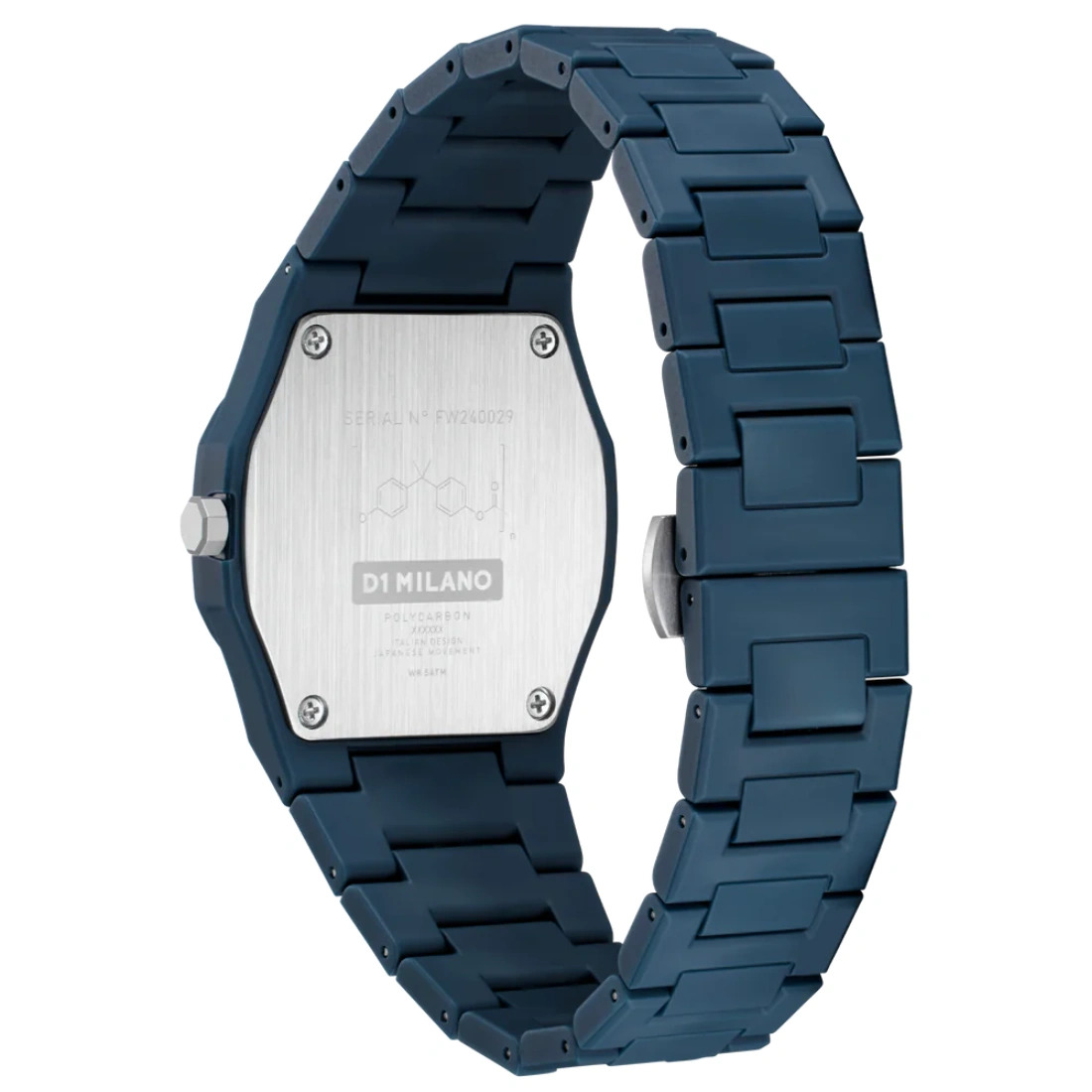 Nuevo icono azul monocromático. Diseño sencillo pero innovador, con una caja de 37 mm y un diseño renovado. El policarbonato, ligero y resistente, garantiza una comodidad perfecta en la muñeca, tanto para hombre como para mujer, haciéndolo perfecto para el día a día, a la vez que mantiene un aspecto robusto y duradero.