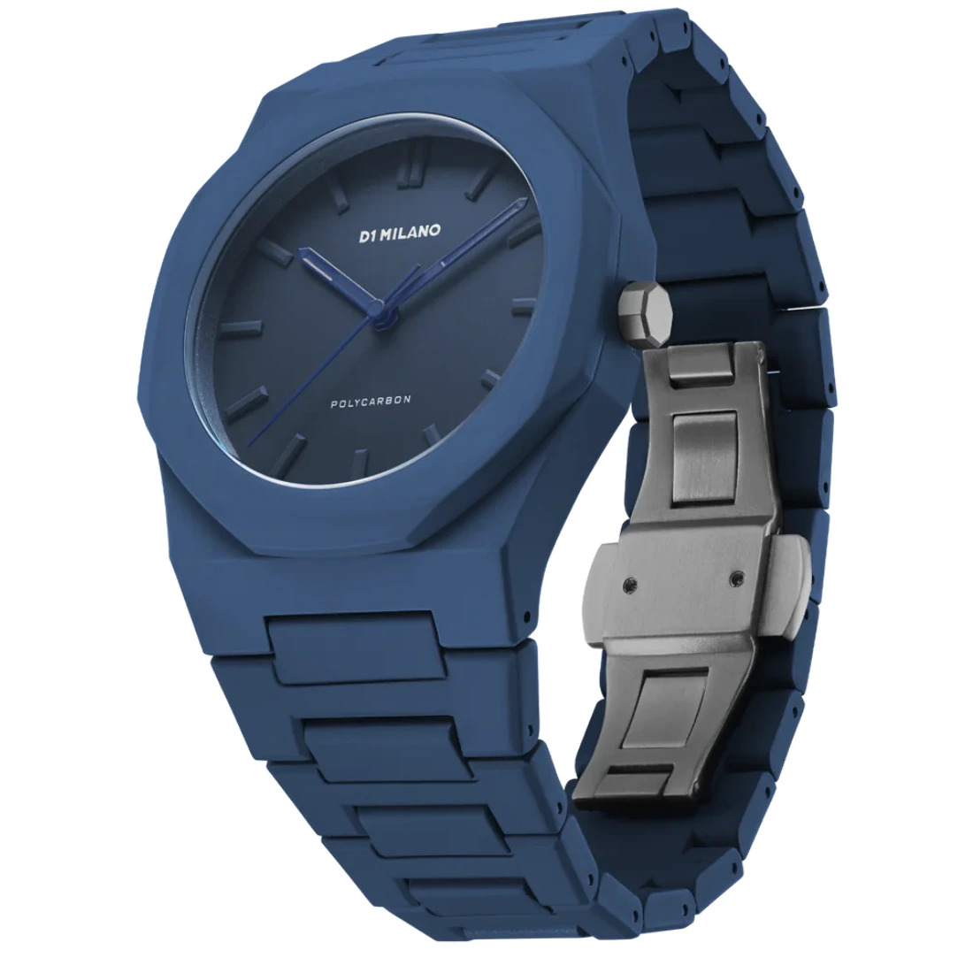Estética monocromática y diseño de policarbonato suave al tacto con un toque de azul en la muñeca. Descubra una nueva visión de Polycarbon que lleva el minimalismo monocromático y la estética experimental a un nivel completamente nuevo.