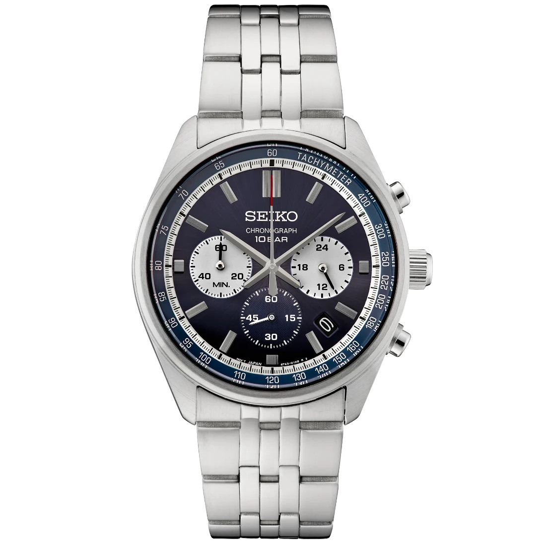Cronógrafo Anillo de esfera de taquímetro azul Fecha Subesfera de 24 horas