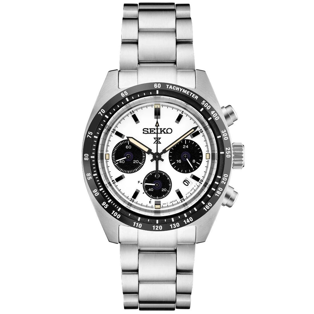 Cronógrafo solar Prospex Speedtimer. Diseñado para quienes consideran la vida como la máxima aventura, Seiko Prospex sigue avanzando, afrontando cada desafío con excelencia tecnológica y diseño ganador. Combinando sincronización de precisión con portabilidad y la eficiencia energética de la energía solar, este reloj excepcional, inspirado en los primeros cronógrafos de precisión de Seiko, desarrollados para las competencias deportivas internacionales en 1964, proporciona medición cronográfica de hasta 60 minutos de tiempo transcurrido en incrementos de 1/5 de segundo e incluye una función de tiempo parcial.