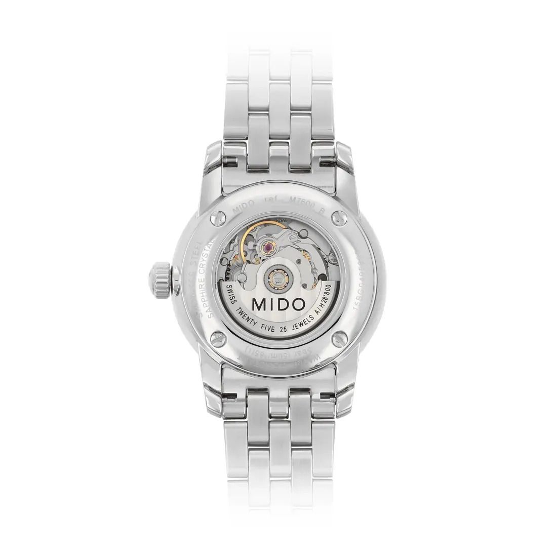 Movimiento Funciones: Fecha Calibre: Automático ETA 2671 Movimiento: Mido Automático Reserva de marcha: Reserva de marcha de hasta 38 horas Diámetro movimiento (mm): 17.20 Joyas: 25 Calibre: 7.75