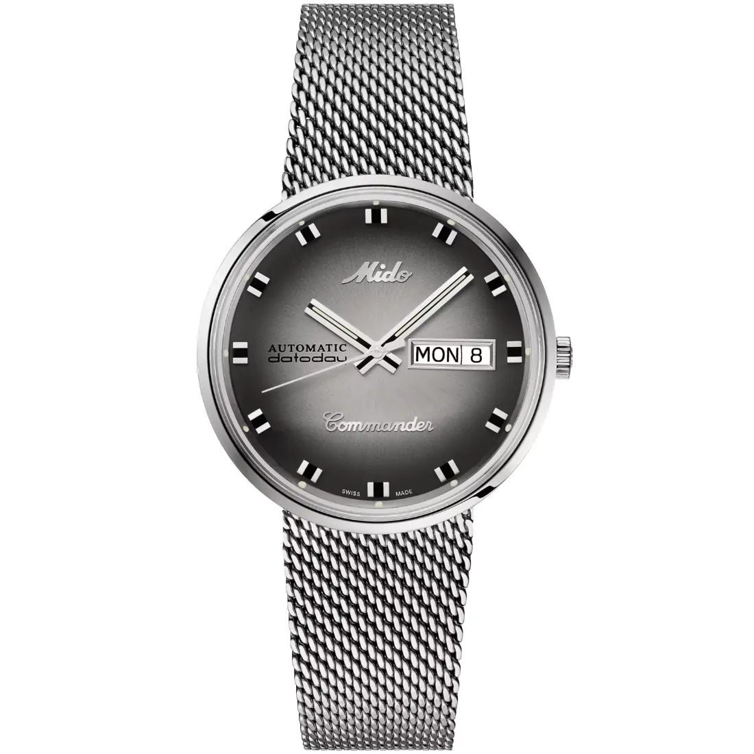 Funciones: Fecha, Día Calibre: Automático Mido Calibre 80 (base ETA C07.621) Movimiento: Mido Automático Reserva de marcha: Reserva de marcha de hasta 80 horas Diámetro movimiento (mm): 25.60 Joyas: 25 Calibre: 11.5
