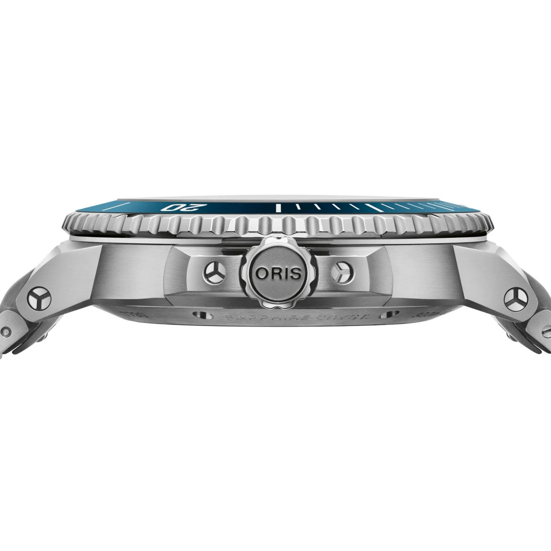 Caja: Caja de acero y cerámica con escala minutera. Zafiro, ambas caras abombadas, capa interior antirreflejos. Acero inoxidable, atornillado, cristal zafiro transparente. Diámetro: 43.50 mm Hermeticidad: 30 Bar Anchura entre cuernos: 23 mm