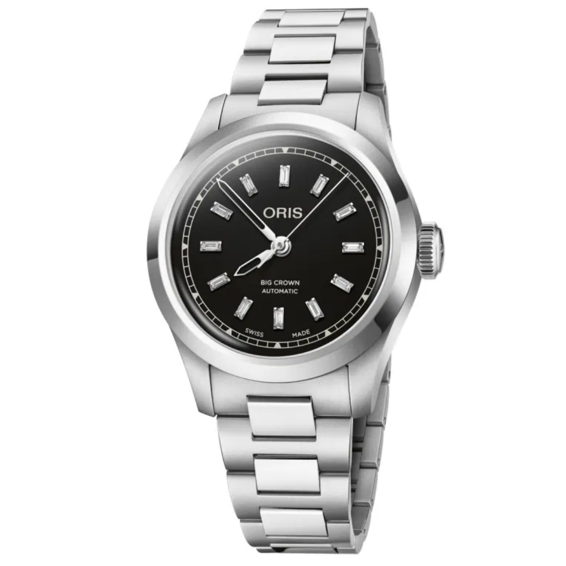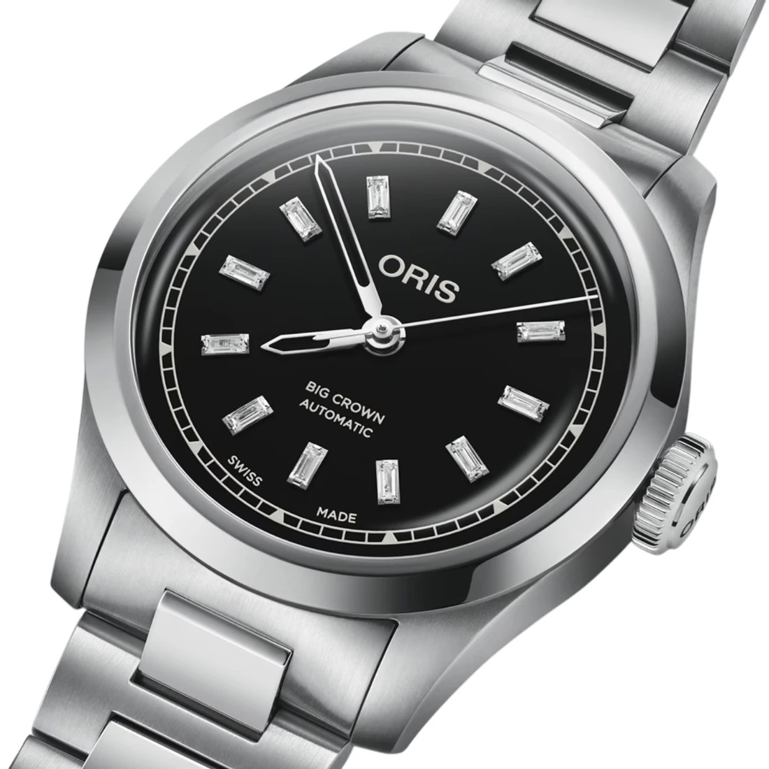 Negra con 12 diamantes tallados en forma de baguete como marcadores de hora