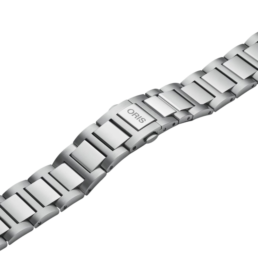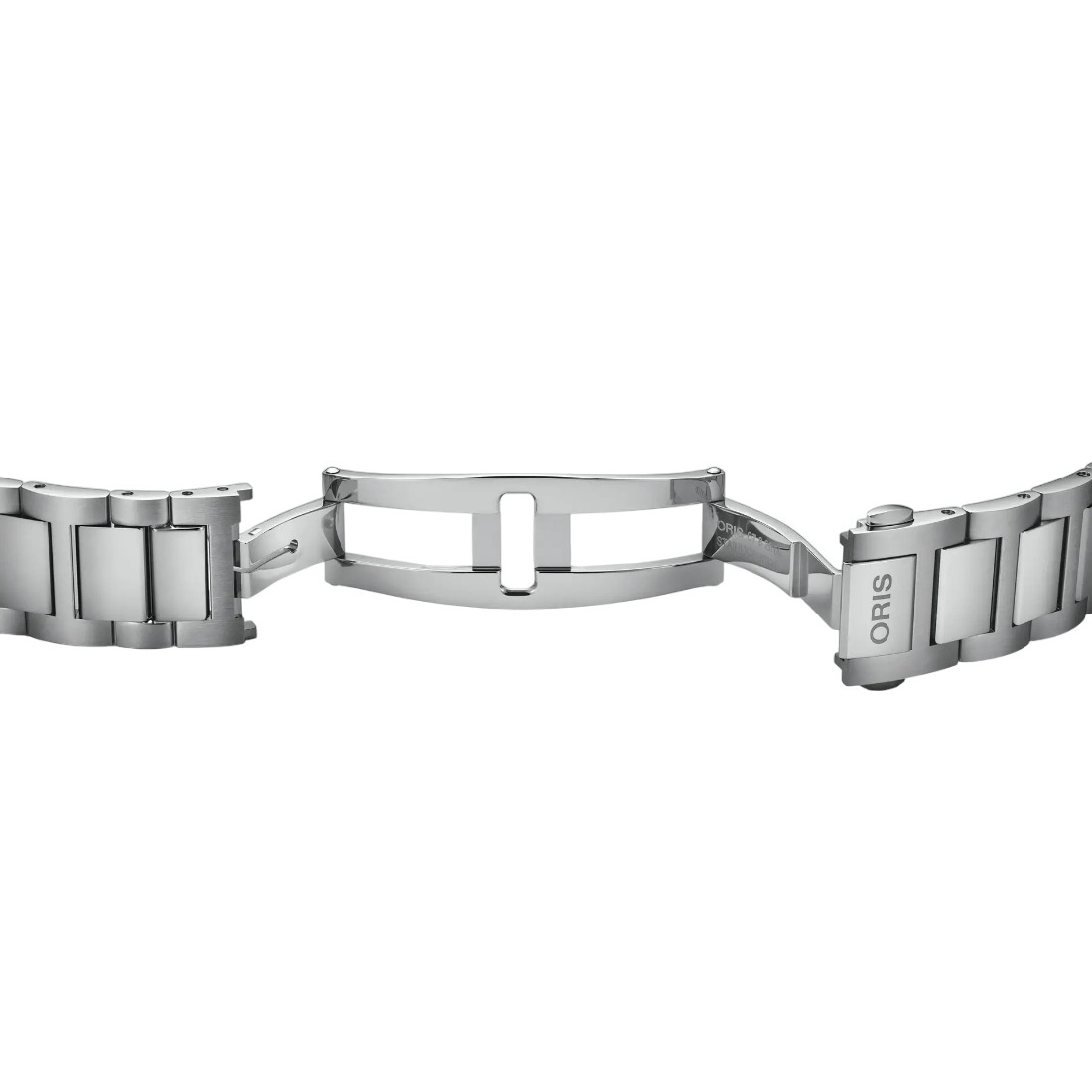 Caja: Caja de acero. Zafiro, ambas caras abombadas, capa interior antirreflejos. Acero inoxidable, atornillado, cristal mineral transparente. Diámetro: 40 mm Hermeticidad: 5 Bar Anchura entre cuernos: 20 mm