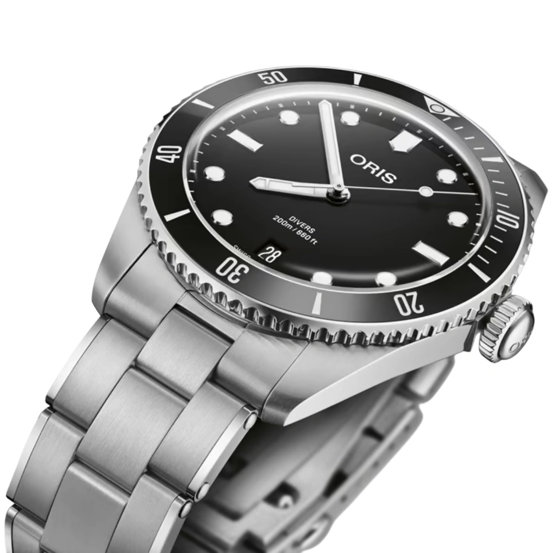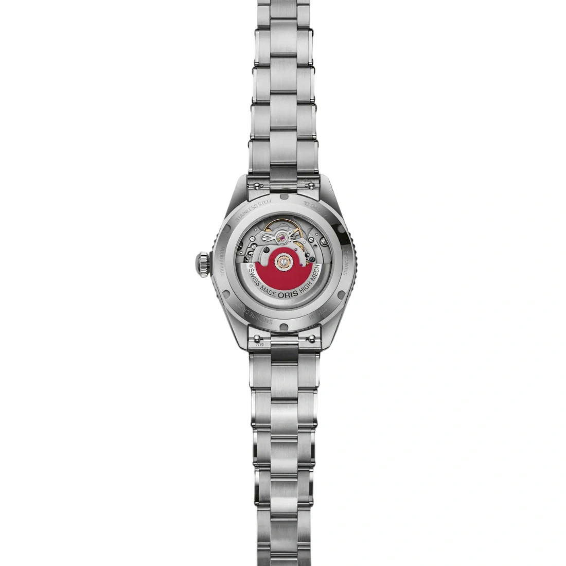 Caja de acero y cerámica con escala minutera. Zafiro, ambas caras abombadas, capa interior antirreflejos. Acero inoxidable, atornillado, cristal mineral transparente. Diámetro: 39.00 mm Hermeticidad: 20 bar Anchura entre cuernos: 19 mm