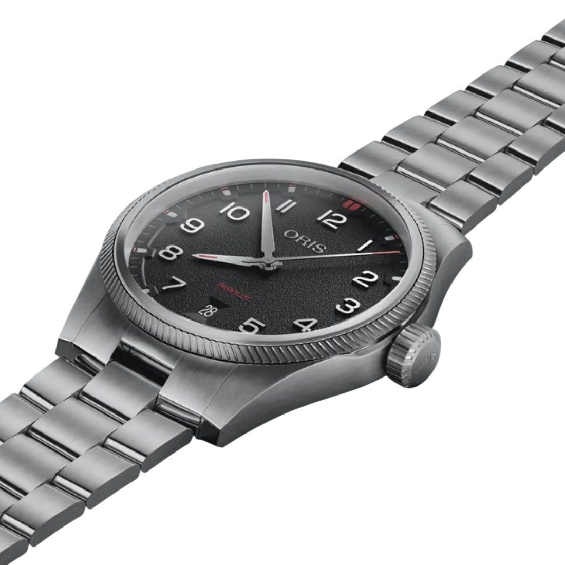 Caja de acero. Zafiro, ambas caras abombadas, capa interior antirreflejos. Acero inoxidable, atornillado, cristal mineral transparente. Diámetro: 41.00 mm, Hermeticidad: 10 bar, Anchura entre cuernos: 20 mm