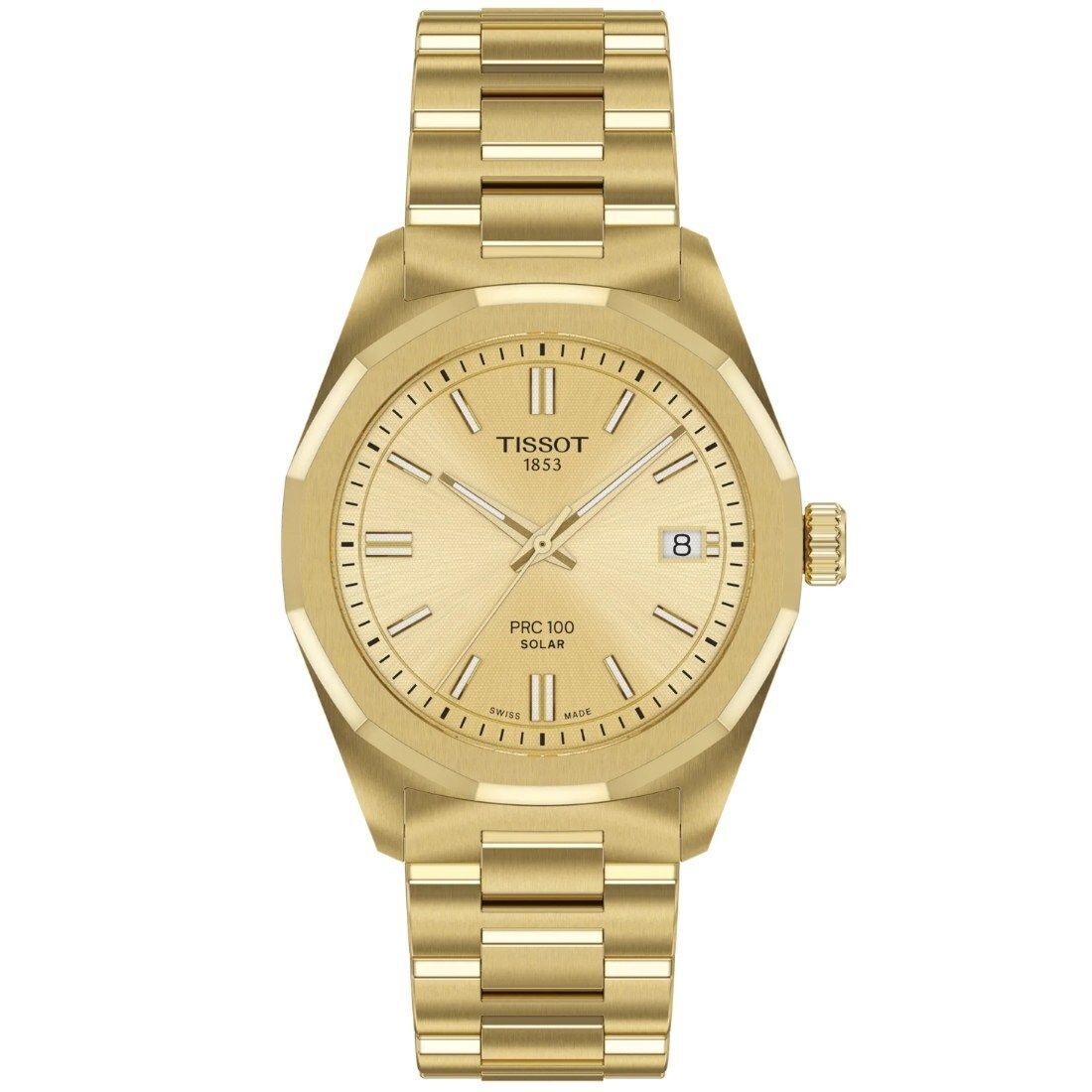 El PRC 100 fue reconocido por su llamativo diseño, haciéndose un hueco en la colección de Tissot. Hoy, vuelve con un movimiento pionero Lightmaster Solar Quartz, que aprovecha la energía fotovoltaica para alimentar cada segundo. Con su caja de acero inoxidable mm y su atrevido bisel dodecagonal, este modelo irradia confianza. Bajo su elegante cristal de zafiro se esconde un movimiento de cuarzo alimentado por energía solar, diseñado para recargarse sin esfuerzo tanto con luz natural como artificial. El indicador de fin de energía garantiza un rendimiento óptimo