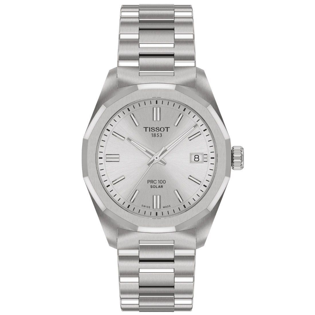 El PRC 100 fue reconocido por su llamativo diseño, haciéndose un hueco en la colección de Tissot. Hoy, vuelve con un movimiento pionero Lightmaster Solar Quartz, que aprovecha la energía fotovoltaica para alimentar cada segundo. Con su caja de acero inoxidable mm y su atrevido bisel dodecagonal, este modelo irradia confianza. Bajo su elegante cristal de zafiro se esconde un movimiento de cuarzo alimentado por energía solar, diseñado para recargarse sin esfuerzo tanto con luz natural como artificial. El indicador de fin de energía garantiza un rendimiento óptimo
