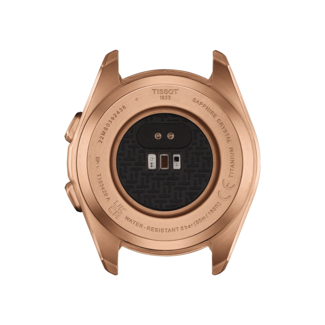 Longitud: 43.00 Anchura: 43.75 Grosor: 13.5 Astas: 21.00 Forma de la caja: Redonda Material de la caja: Caja de titanio antimagnético con revestimiento de pvd de oro rosa Opciones de la caja: Bisel de cerámica Cristal: Cristal de zafiro táctil