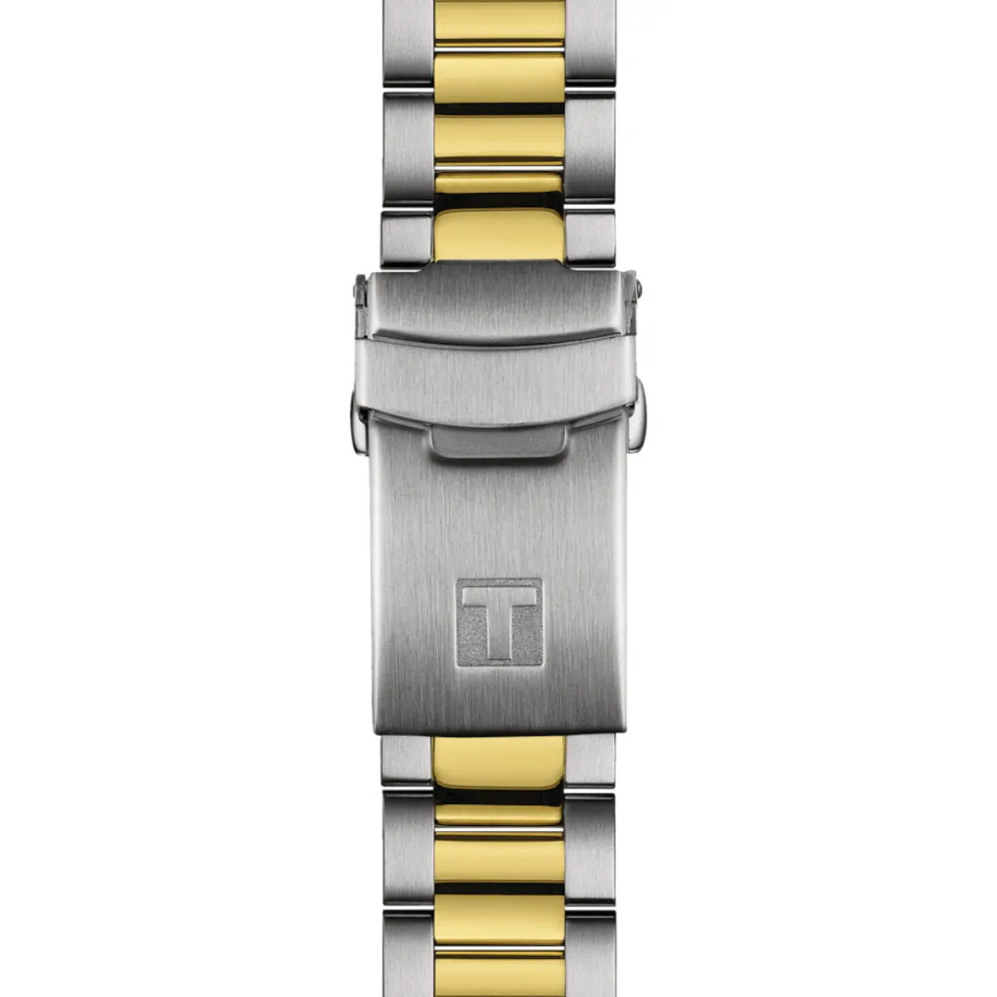 Correa/Brazalete Referencia de la correa/cadena: T605049461 Detalles de la correa: Acero Inoxidable Color de la correa: Gris, Oro amarillo 1n14 Cierre: Pulsera intercambiable de fácil apertura, Cierre plegable con seguridad y pulsadores Referencia de la correa: T613049479