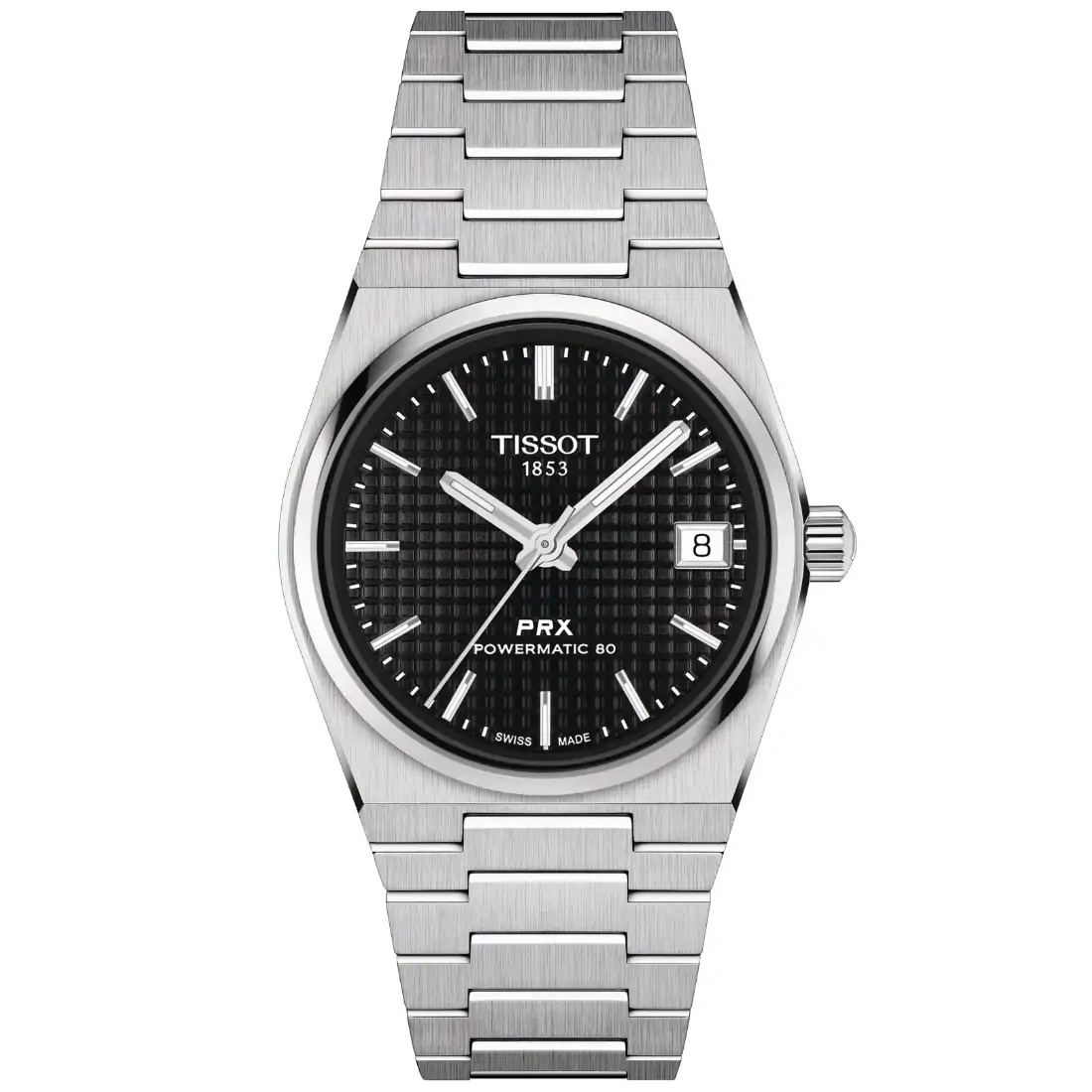 Descubra el Tissot PRX 35mm Powermatic 80, una cautivadora mezcla de elegancia atemporal e innovación moderna. Este reloj de 35 mm cuenta con una caja de acero de alta calidad y una elegante esfera negra, reinventando sus icónicas raíces de 1978. El distintivo diseño de la esfera añade un toque de sofisticación y distingue a este modelo automático. Resistente al agua hasta 100 metros y equipado con una espiral con volante Nivachron™, el PRX es una pieza versátil para los entusiastas de los relojes más exigentes. El brazalete de acero satinado con cierre desplegable de acero de tres hojas garantiza un ajuste cómodo. Abrace el encanto del Tissot PRX 35mm Powermatic 80 en negro.