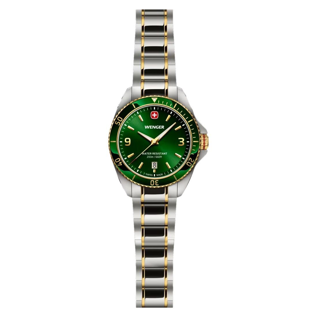 Abraza la elegancia atemporal con el reloj Executive. Ya sea para actividades cotidianas o para ocasiones especiales, este reloj está diseñado para elevar cualquier atuendo a la vez que cubre las exigencias de tu estilo de vida. Este reloj de cuarzo analógico hecho en Suiza rinde homenaje al rico legado de Wenger: presenta un esquema de colores dispuesto meticulosamente que armoniza con el encarte de mineral metalizado de la caja en el bisel, y la esfera. La esfera refinada está adornada con sofisticados índices aplicados y áreas luminiscentes, lo que asegura una lectura óptima en condiciones de poca luz y entornos nocturnos. Elaborado con acabados metálicos y biselados pulidos en la caja del reloj, el Executive emana funcionalidad y estilo.