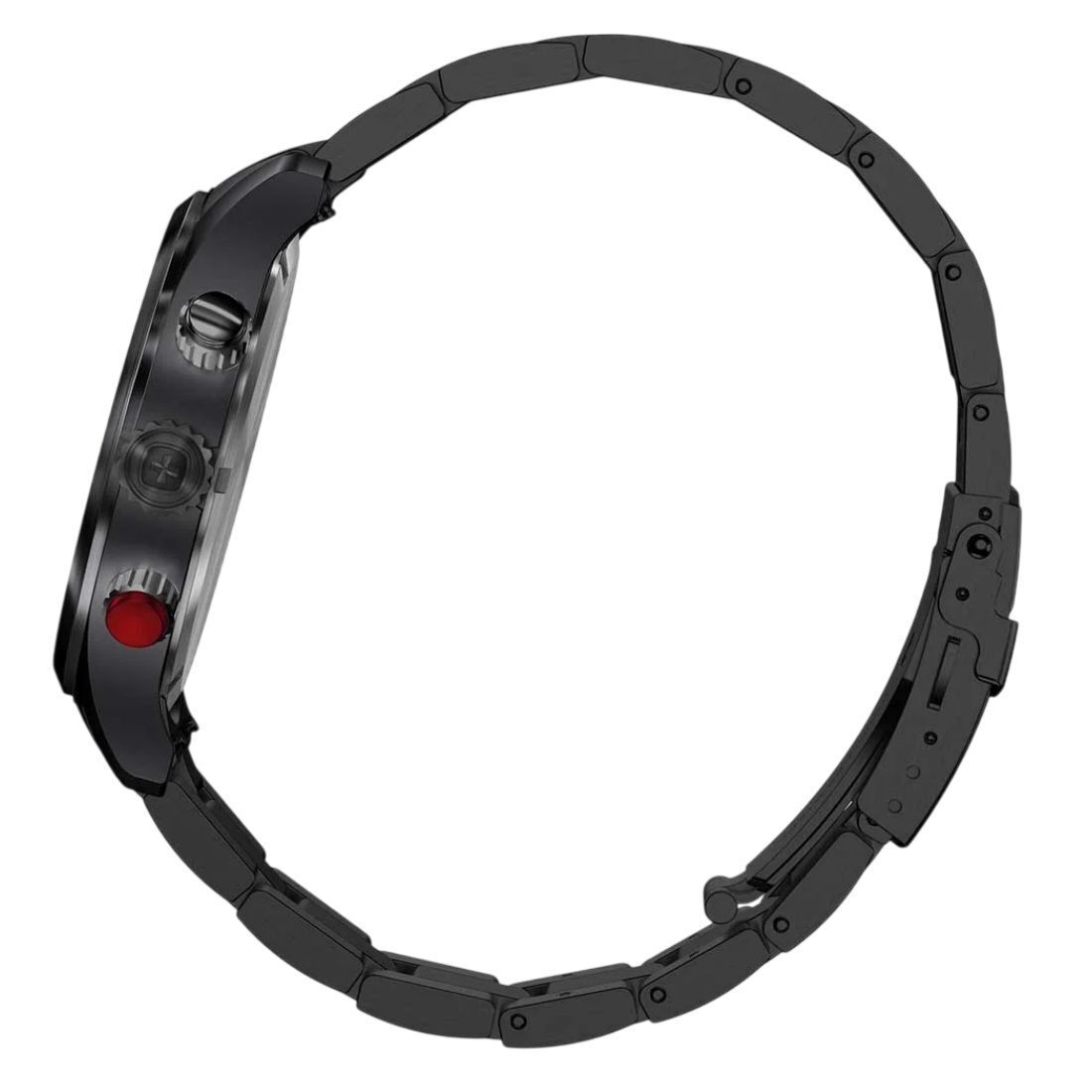 Cristal mineral con revestimiento de zafiro, Cronógrafo, Fecha, Material luminiscente en la esfera y en las manecillas de minutos y horas, Tapa de caja atornillada