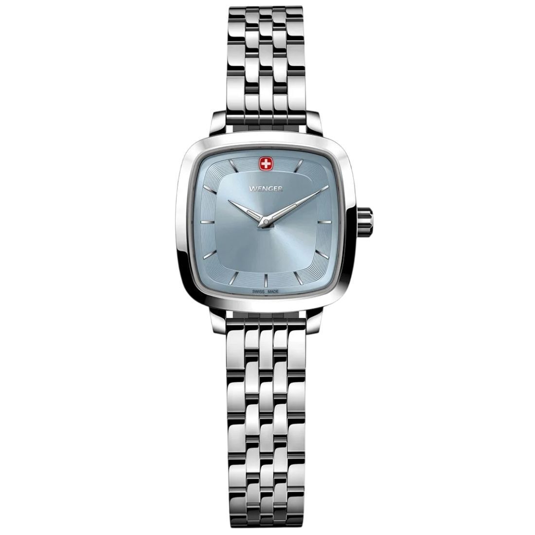 Te presentamos nuestro reloj Vintage Classic, un clásico atemporal, con un toque moderno. Nuestro reloj combina diseño moderno con un toque vintage clásico que le da un aspecto verdaderamente único. La innovadora caja del reloj en forma de cuadrado redondeado repite la misma forma del logotipo de Wenger, mientras que la clásica esfera cepillada con efecto rayos de sol, los índices de color plata y el logotipo de Wenger en rojo y blanco a las 12 en punto completan el estilo. Además, el diseño del brazalete de acero inoxidable se reinterpreta de forma más moderna y está equipado con una hebilla corrediza para ajustar fácilmente el tamaño.